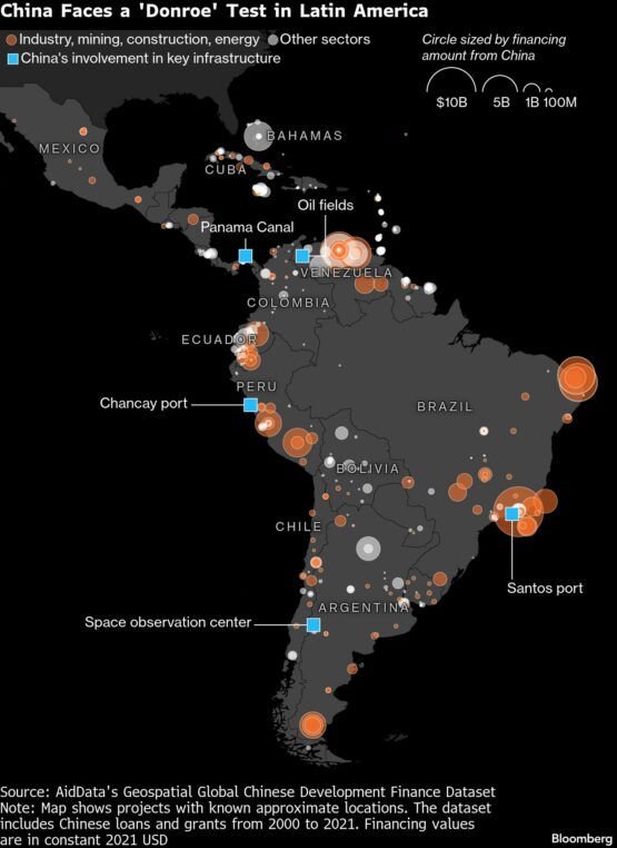 For now, governments throughout the region appear dismissive of the White House threats, not least because they don’t see an inward-looking US providing an alternative to Chinese investments in the region. In Brazil, Latin America’s largest economy, officials who deal with Chinese investments saw Trump’s actions as isolated to Venezuela. Asking not to be identified to discuss government policy, the officials said President Luiz Inacio Lula da Silva won’t take sides between the US and China, and Brazil more broadly saw its diversified trade relationships as providing leverage in talks with the Trump administration.