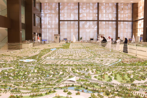 A model of the Khuzam development shows the scale of the project to visitors. Image: Maya Anwar/Bloomberg