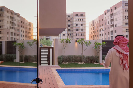 The pool at a newly built residence. Many young Saudis are opting for apartments and shared community amenities, foregoing the costly housing favoured by their parents’ generation. Image: Maya Anwar/Bloomberg