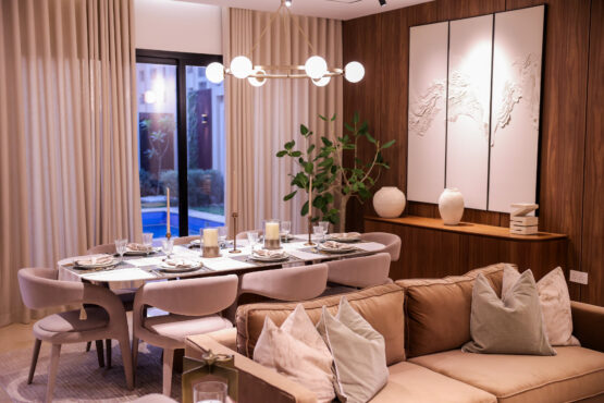 The dining room of a show flat in the development. Image: Maya Anwar/Bloomberg
