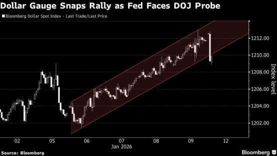 The Bloomberg Dollar Spot Index fell 0.2% in Asian trading on Monday, the biggest drop since December 23. That’s after Fed Chair Jerome Powell revealed the central bank had been served grand jury subpoenas from the Justice Department threatening a criminal indictment tied to his June testimony on headquarter renovations.