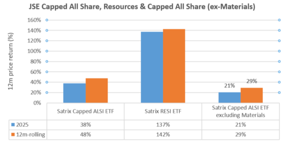 Source: Various Satrix ETFs as index proxies, and analyst workings