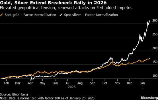 The crisis — coming hot on the heels of the US’ seizure of Venezuela’s leader — has added further impetus to what was already a breakneck rally in precious metals. The Trump administration’s renewed attacks on the Federal Reserve have also aided gold and silver this year, as they’ve revived concerns about the independence of the central bank.