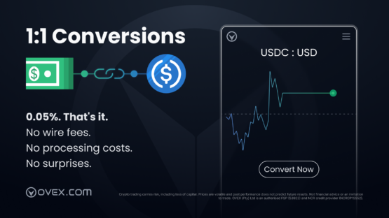 This facility allows individuals and businesses to convert USD into USDC quickly, transparently and at a guaranteed 1:1 rate. Rather than relying on traditional exchange trades or opaque minting processes, OVEX offers a direct conversion flow with a flat fee of just 0.05% (five basis points).