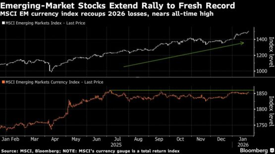 Emerging-market stocks, currencies and precious metals are extending a storming start to 2026 as tensions between the US and Europe weigh on the dollar and re-energize diversification flows around the world.