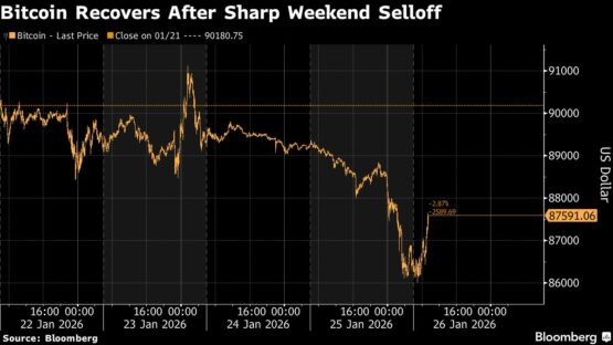 The largest cryptocurrency dropped as much as 3.5% Sunday to a 2026 low of just above $86 000 before climbing to $87 733 Monday morning in Singapore. Second largest token Ether slumped as much as 5.7% before rallying 2% to trade at $2 872, still close to its lowest level since mid December.