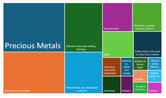 Heat map of South Africa’s exports in 2024