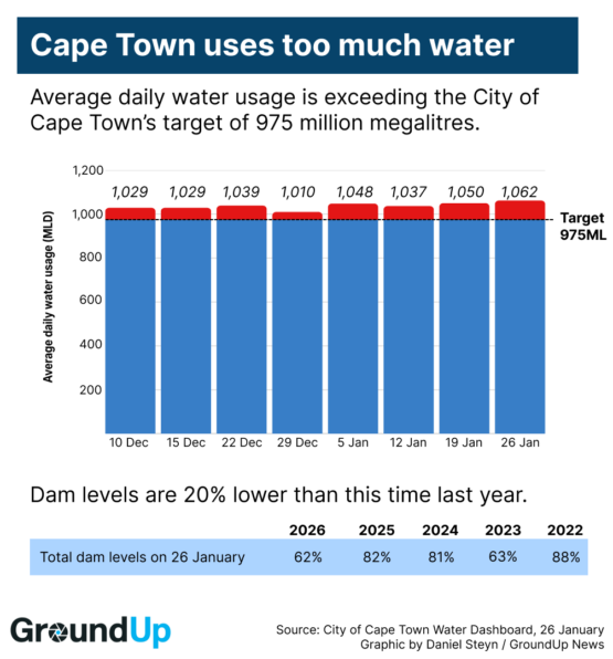 Across the city, water use is too high, and much higher than the average per-person use in European cities and other parts of Africa.