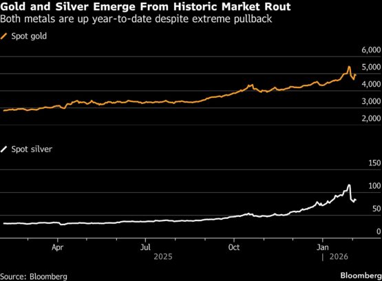 Precious metals soared last month in a rally underpinned by speculative momentum, geopolitical upheaval and concerns about the Federal Reserve’s independence. However, market watchers had warned that the advances had been too large and too swift. The surge came to a sudden halt at the end of last week, with silver seeing its biggest daily drop on record and gold plunging the most since 2013.