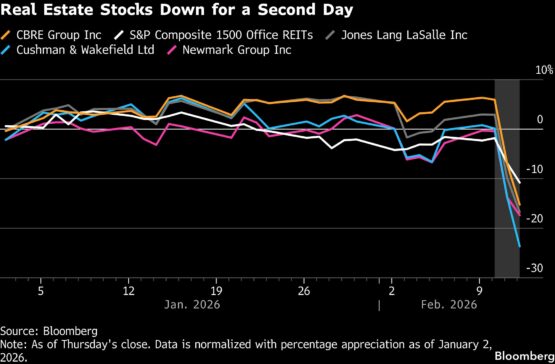 “The market is pricing in the potential for mass office-using job losses as a result of AI,” said Jefferies analyst Joe Dickstein.