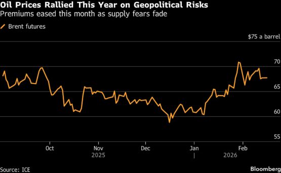 Brent traded close to $68 a barrel, after its first back-to-back weekly drop this year, while West Texas Intermediate was near $63. US President Donald Trump said Friday that regime change would be the best outcome for Iran, ratcheting up pressure on Tehran ahead of the negotiations in Geneva.
