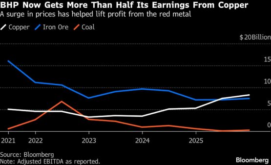 Copper, a metal favoured for its vital role in a more electrified world, accounted for more than half of the group’s profit for the first time — a significant win for Chief Executive Officer Mike Henry, who has sought to diversify the world’s largest miner away from operations focused on serving China’s steel mills. Acquisitions began to bear fruit, as did the improvements at Escondida, the world’s largest mine — all helped by a record surge in prices.
