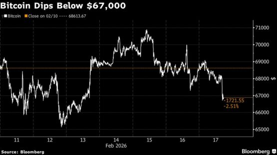 The token dropped as much as 3.2% to $66 604 on Tuesday in New York before paring the decline. Bitcoin, which has tended to move with fluctuations in tech stocks in recent months, mirrored an earlier move lower in US equities but failed to keep pace when they edged higher.