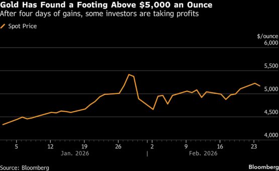 Bullion fell as much as 1.6%, before paring some losses, as Chinese traders returned on Tuesday after the Lunar New Year break. The metal climbed more than 7% over the previous four sessions, with investors drawn to safer assets as President Donald Trump promised new import tariffs and the US faced off with Iran.