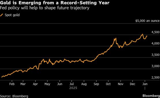 Bullion hit an all-time high of $4,549.92 on Dec. 26. Some leading banks forecast further gains this year, especially with the Fed expected to deliver additional rate reductions and Trump reshaping the US central bank’s leadership. Goldman Sachs Group Inc. said last month that its base case was for a rally to $4,900 an ounce, with risks to the upside.